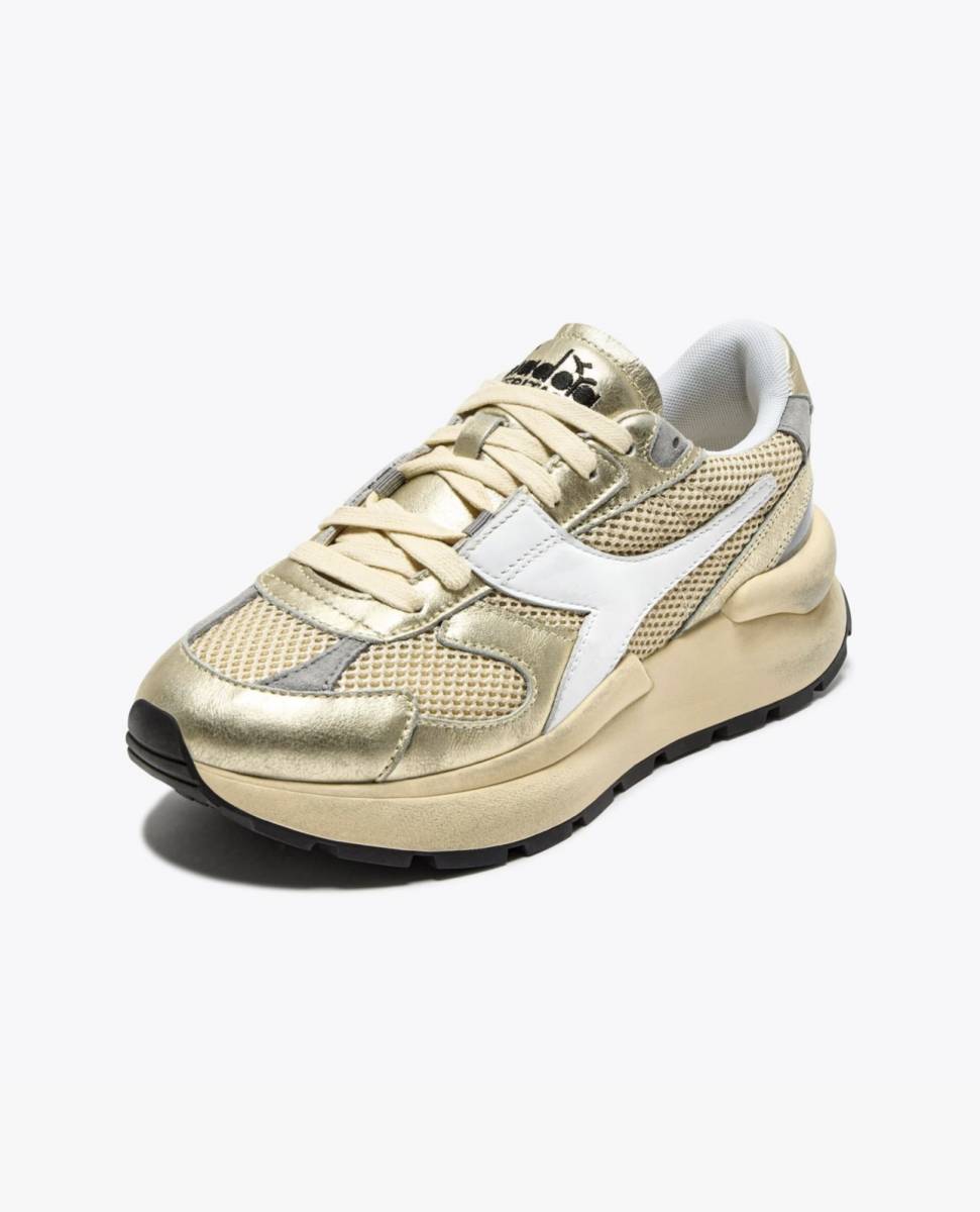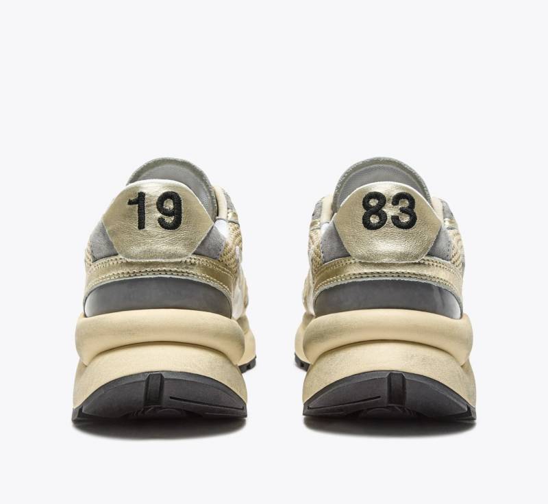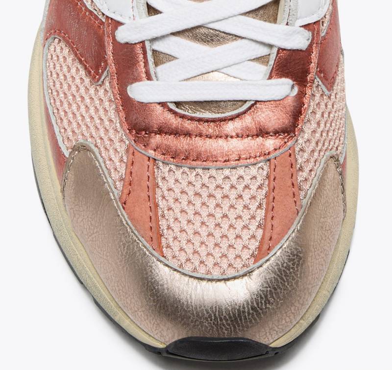 Voici la Mercury Elite Lam Used, la nouvelle version avec du mesh métallisé et du cuir lamé. Caractérisée par un traitement stone wash et un cirage prononcé sur la semelle, pour rompre avec la nostalgie des chaussures de sport des années 70.